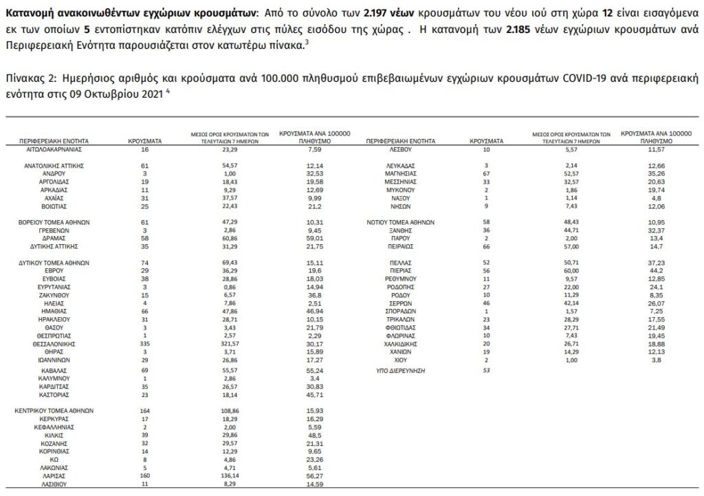 Από τα 2.197 νέα κρούσματα, τα 528 καταγράφηκαν στην Αττική και τα 335 στη Θεσσαλονίκη.
