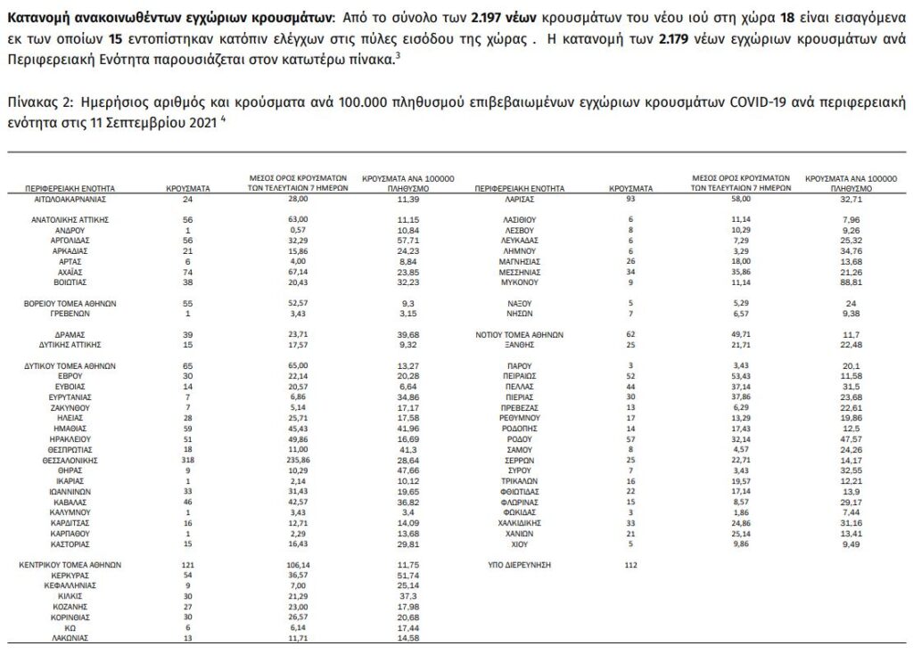 Διαβάστε την ημερήσια έκθεση της επιδημιολογικής επιτήρησης