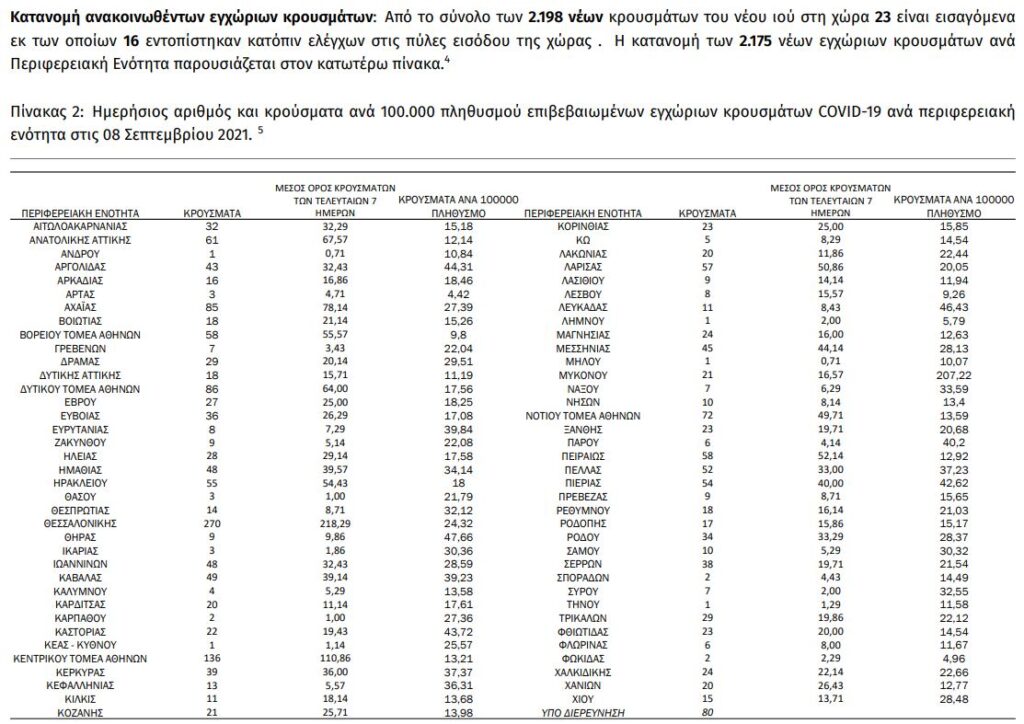 Από τα 2.198 νέα κρούσματα, τα 499 εντοπίζονται στην Αττική (383 χθες) και τα 270 στη Θεσσαλονίκη (204 χθες).