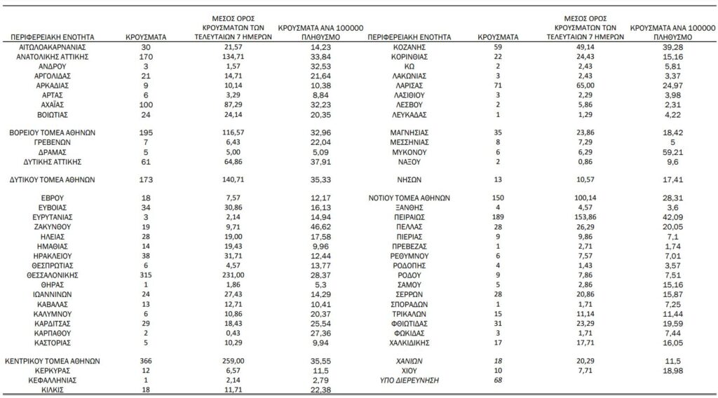 🔴 170 από την Ανατολική Αττική (192 χθες).