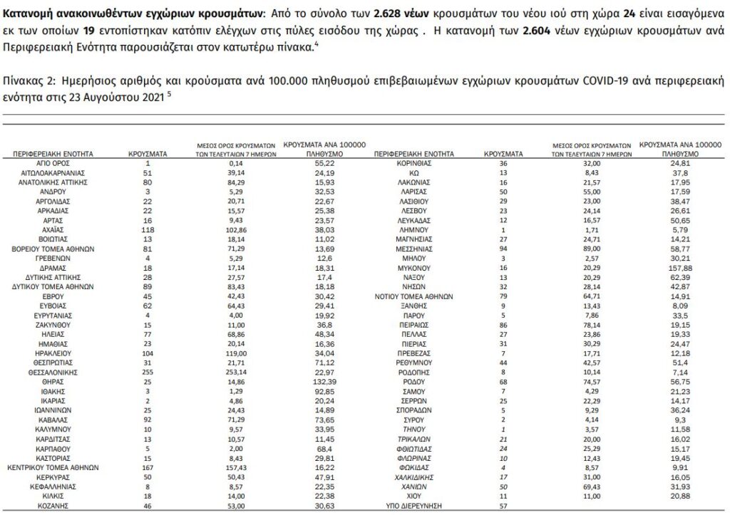 Από τα 2.628 νέα κρούσματα, στην Αττική εντοπίστηκαν 642 νέες μολύνσεις και 255 στη Θεσσαλονίκη.