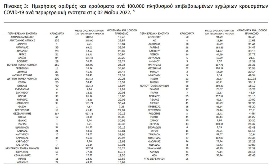 Διαβάστε την ημερήσια έκθεση της επιδημιολογικής επιτήρησης