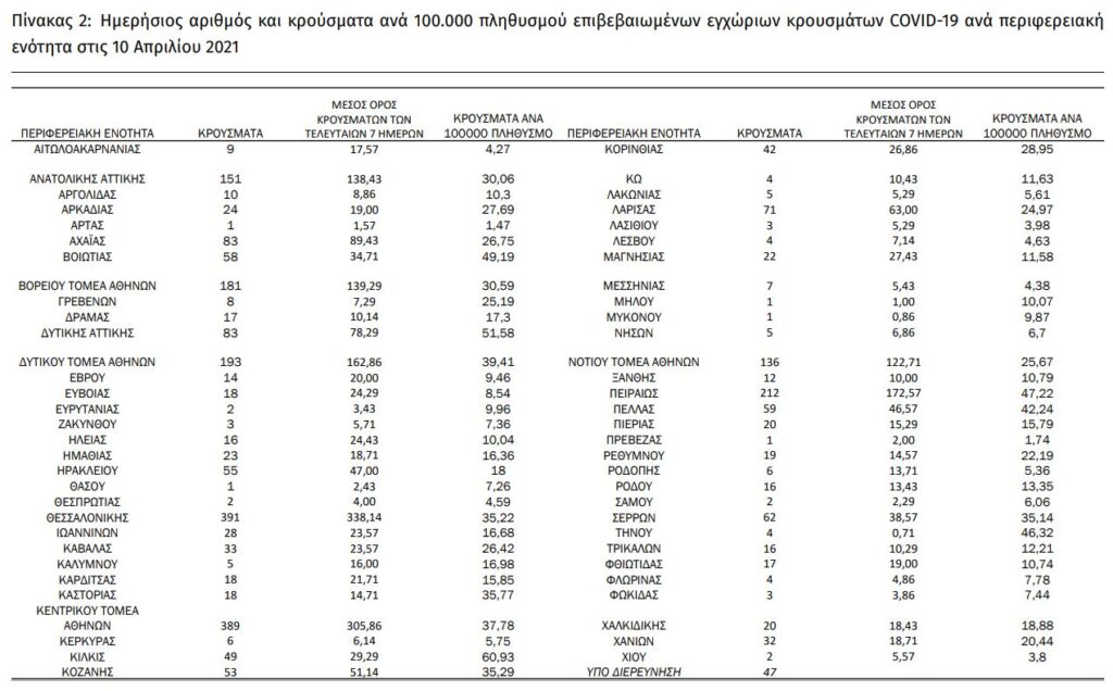 Οι νέες λοιμώξεις στο Λεκανοπέδιο και στην Περιφερειακή Ενότητα Νήσων: