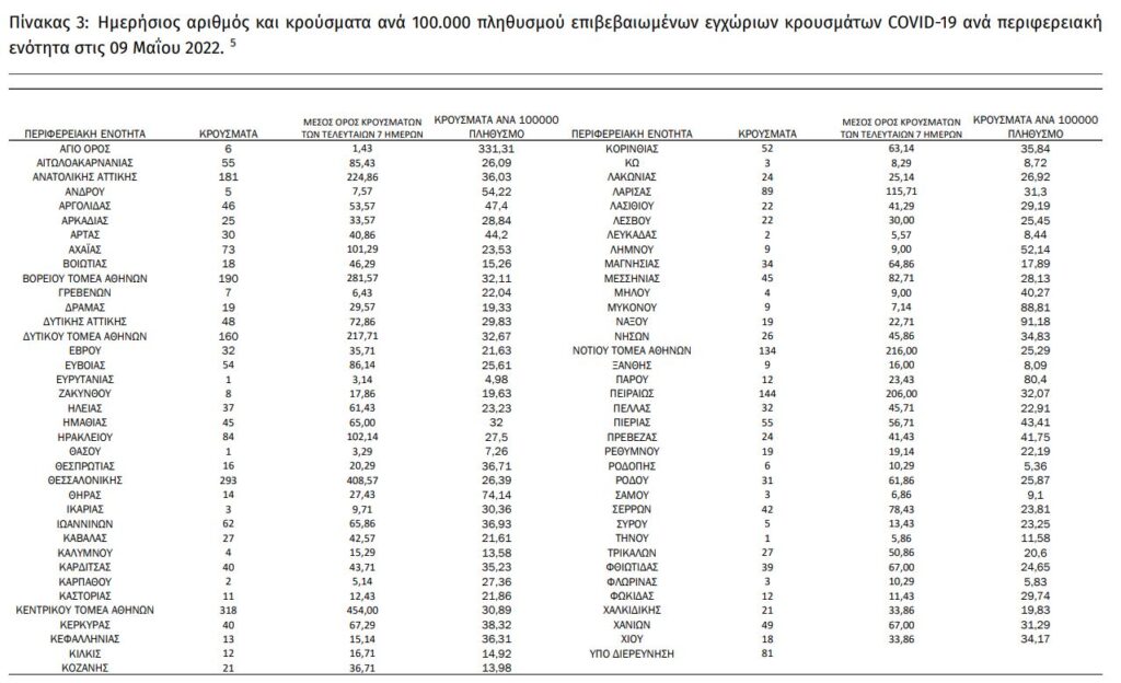Διαβάστε την ημερήσια έκθεση της επιδημιολογικής επιτήρησης