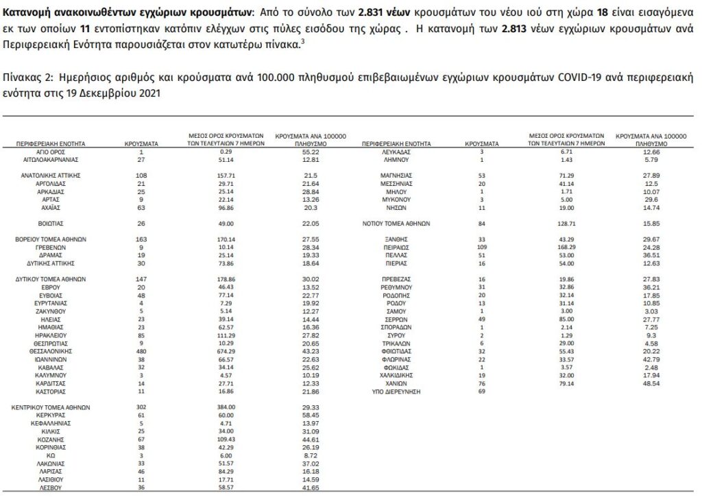 Από τα 2.831 νέα κρούσματα, 954 εντοπίζονται στην Αττική και 480 στη Θεσσαλονίκη.