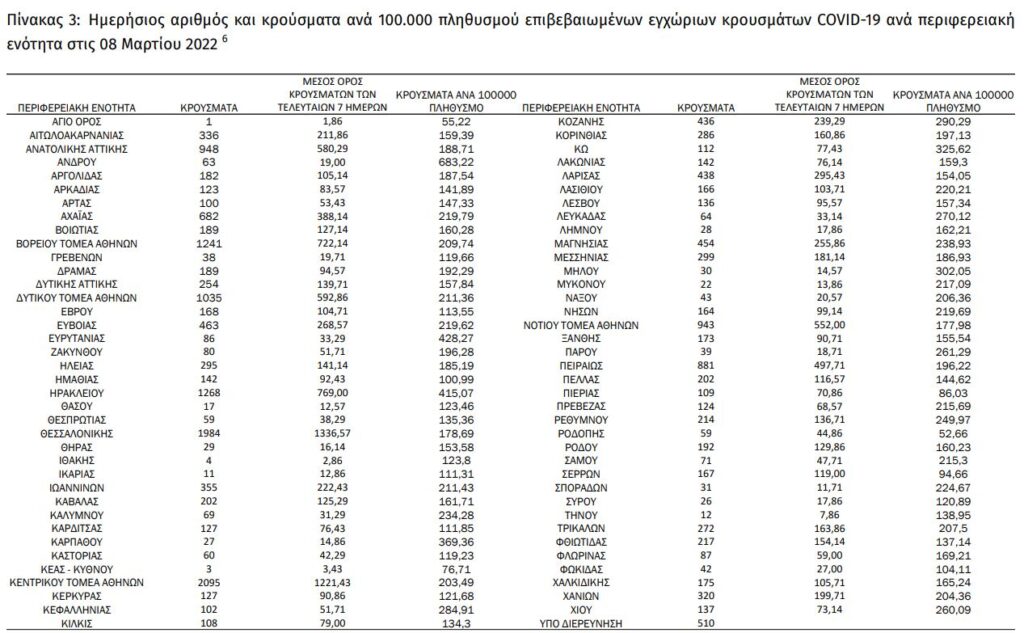 Διαβάστε την ημερήσια έκθεση της επιδημιολογικής επιτήρησης