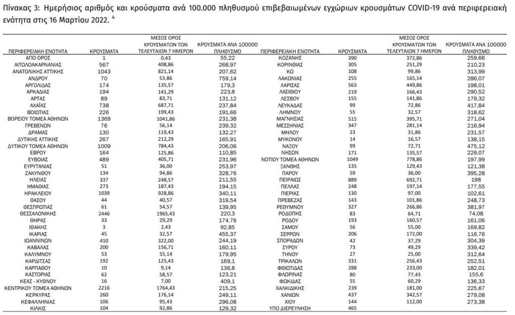 Διαβάστε την ημερήσια έκθεση της επιδημιολογικής επιτήρησης