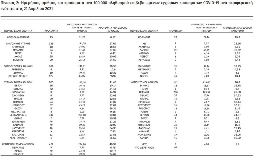 Διαβάστε την ημερήσια έκθεση της επιδημιολογικής επιτήρησης