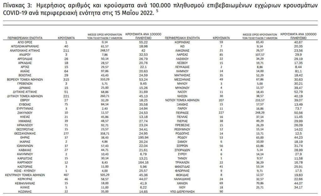 Διαβάστε την ημερήσια έκθεση της επιδημιολογικής επιτήρησης