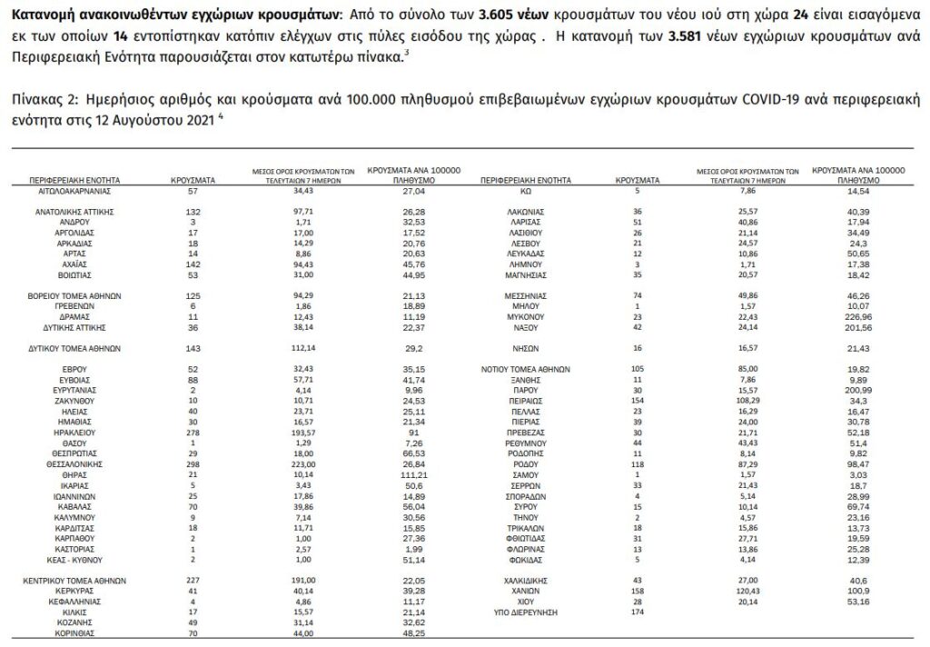Από τα 3.493 νέα κρούσματα, στην Αττική εντοπίστηκαν 927, στην Κρήτη 441 και στη Θεσσαλονίκη 316.