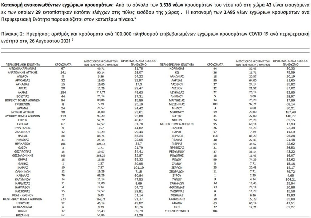 Διαβάστε την ημερήσια έκθεση της επιδημιολογικής επιτήρησης