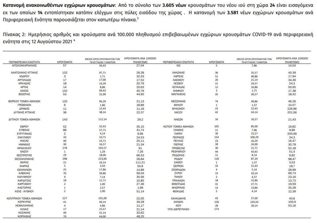 Από τα 3.605 νέα κρούσματα, στην Αττική εντοπίστηκαν 938, στην Κρήτη 506 και στη Θεσσαλονίκη 298.