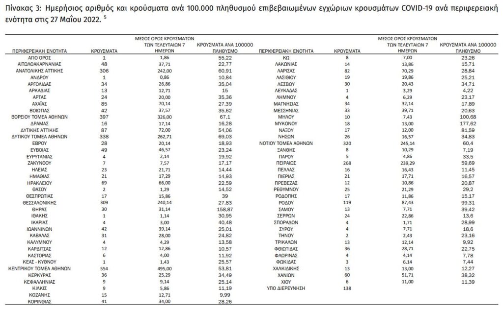Διαβάστε την ημερήσια έκθεση της επιδημιολογικής επιτήρησης