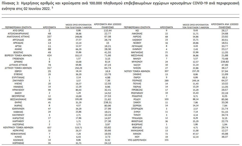 Διαβάστε την ημερήσια έκθεση της επιδημιολογικής επιτήρησης