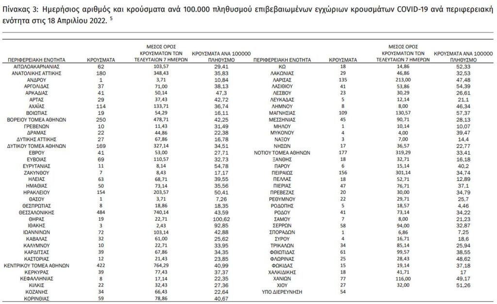 Διαβάστε την ημερήσια έκθεση της επιδημιολογικής επιτήρησης