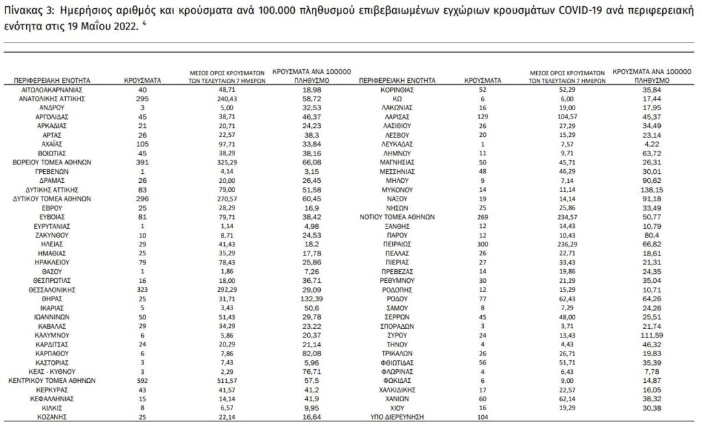 Η ημερήσια επιδημιολογική έκθεση του ΕΟΔΥ για την πανδημία