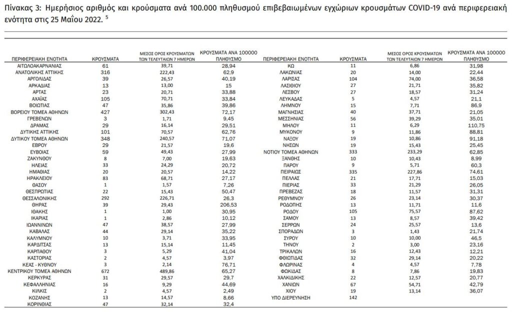 Διαβάστε την ημερήσια έκθεση της επιδημιολογικής επιτήρησης