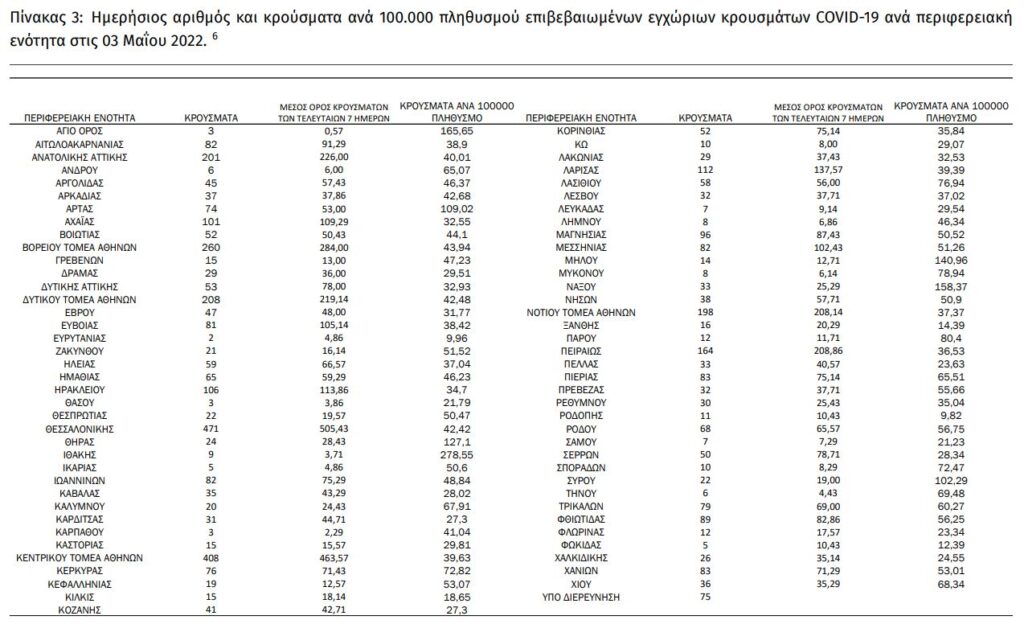 Διαβάστε την ημερήσια έκθεση της επιδημιολογικής επιτήρησης