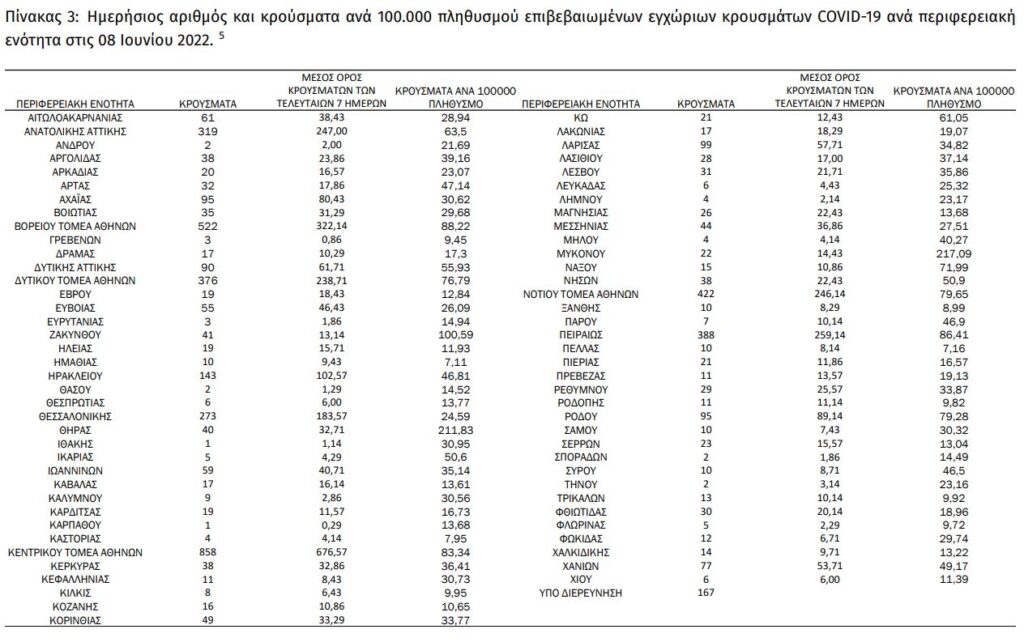 Διαβάστε την ημερήσια έκθεση της επιδημιολογικής επιτήρησης