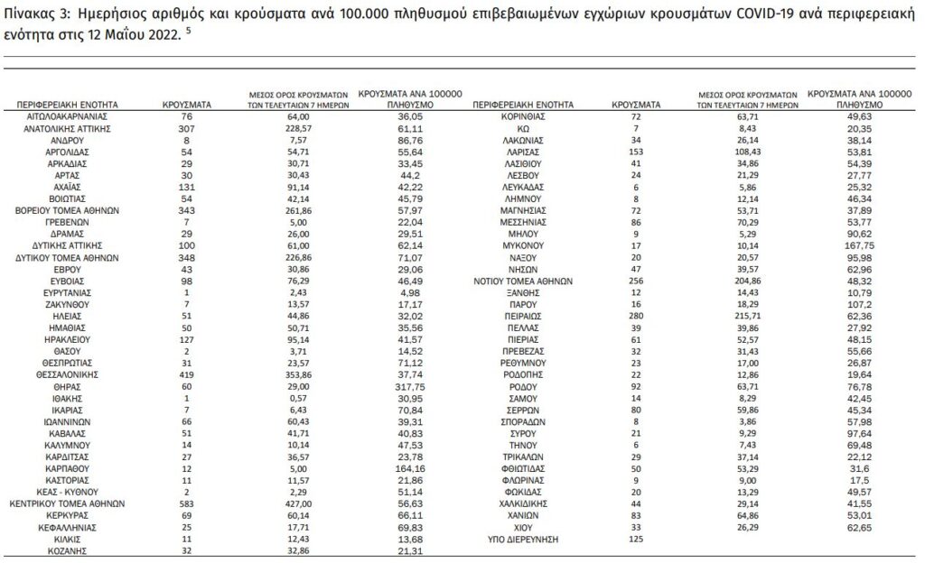Διαβάστε την ημερήσια έκθεση της επιδημιολογικής επιτήρησης