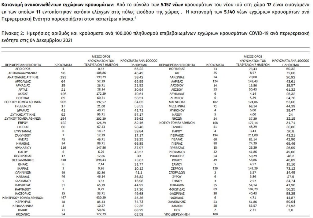 Από τα 5.157 νέα κρούσματα (χθες 6.201), 1.537 εντοπίζονται στην Αττική (χθες 1.709) και 818 στη Θεσσαλονίκη (χθες 1.032).