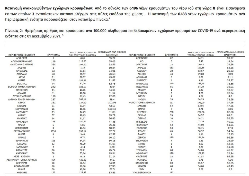 Από τα συνολικά 6.196 κρούσματα, 1.845 καταγράφονται στην Αττική (2.200 χθες) και 1.030 στη Θεσσαλονίκη (1.162 χθες).