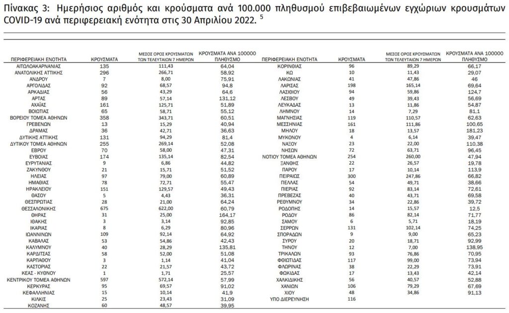 Διαβάστε την ημερήσια έκθεση της επιδημιολογικής επιτήρησης