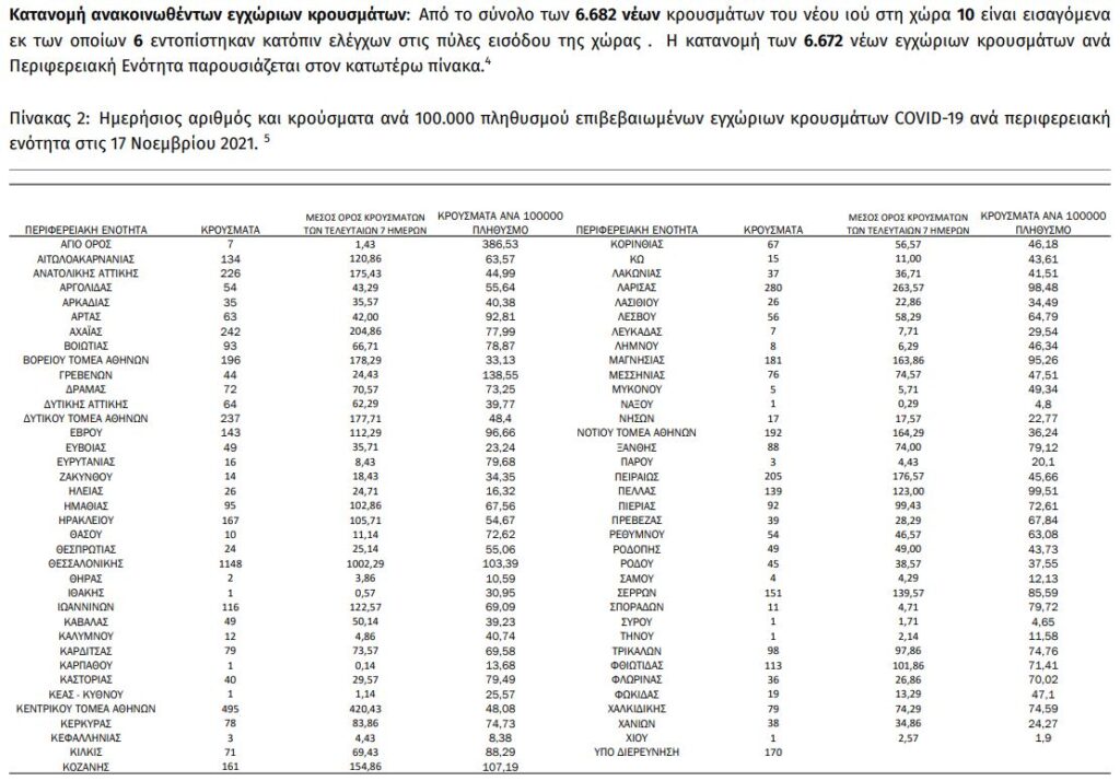 Διαβάστε την ημερήσια έκθεση της επιδημιολογικής επιτήρησης
