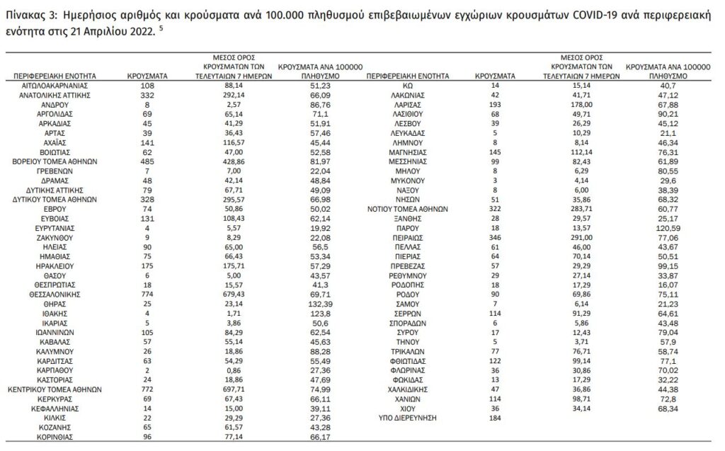 Διαβάστε την ημερήσια έκθεση της επιδημιολογικής επιτήρησης