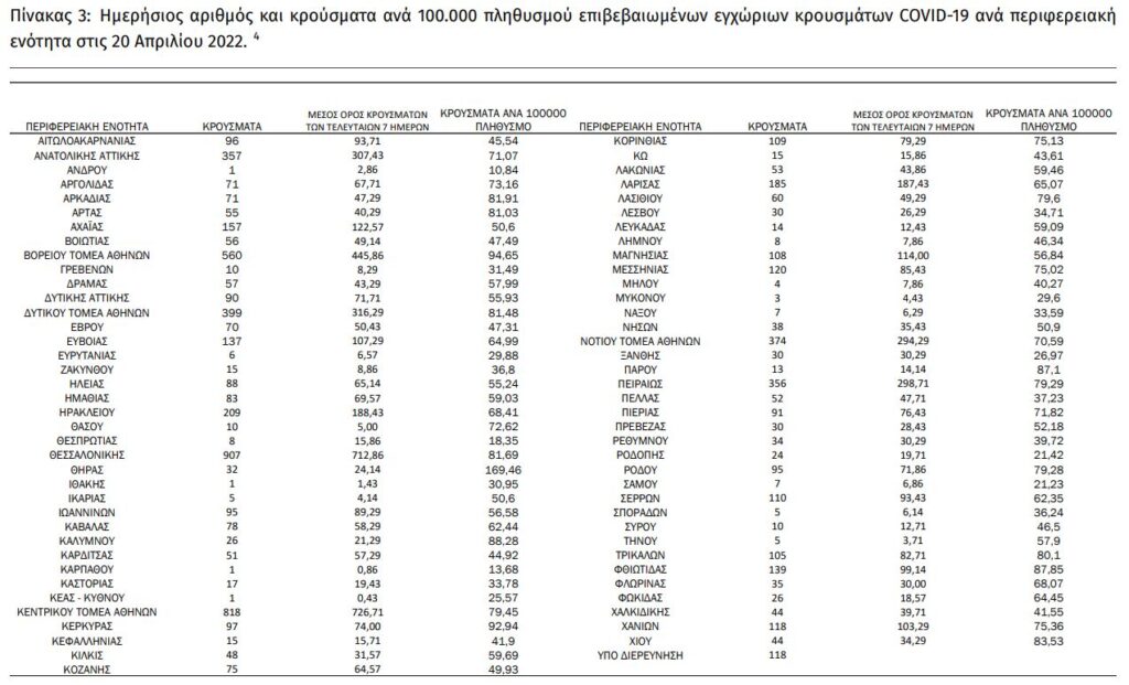 Διαβάστε την ημερήσια έκθεση της επιδημιολογικής επιτήρησης