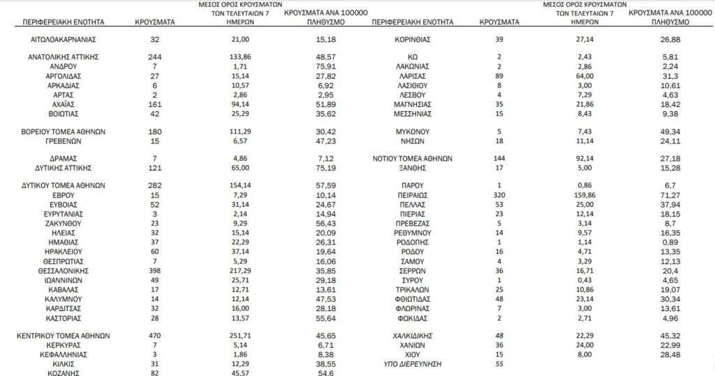 🔴 244 από την Ανατολική Αττική (93 χθες).