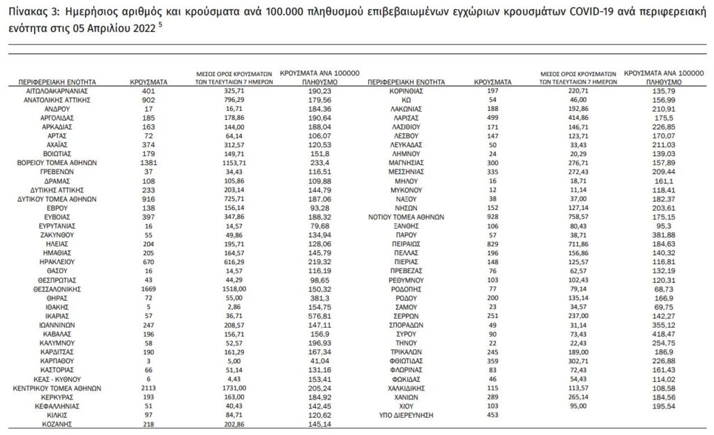 Διαβάστε την ημερήσια έκθεση της επιδημιολογικής επιτήρησης