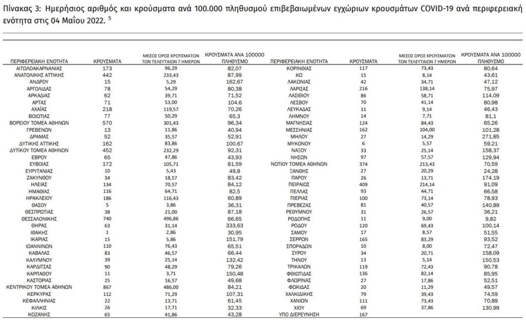Διαβάστε την ημερήσια έκθεση της επιδημιολογικής επιτήρησης