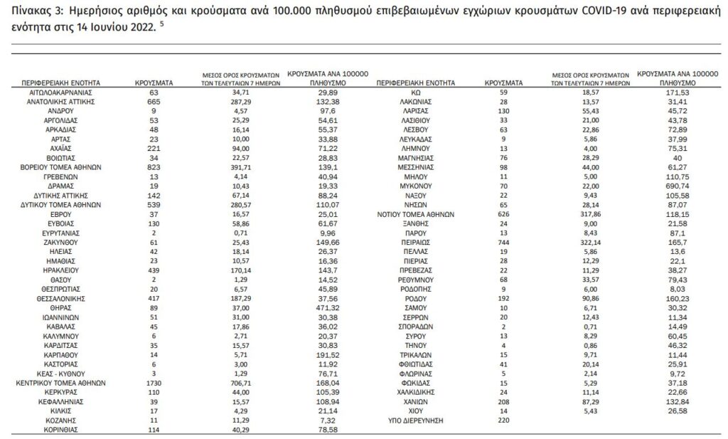 Η ημερήσια επιδημιολογική έκθεση του ΕΟΔΥ για την πανδημία