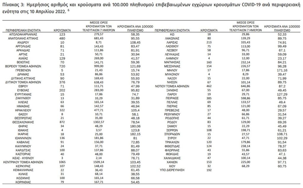 Διαβάστε την ημερήσια έκθεση της επιδημιολογικής επιτήρησης
