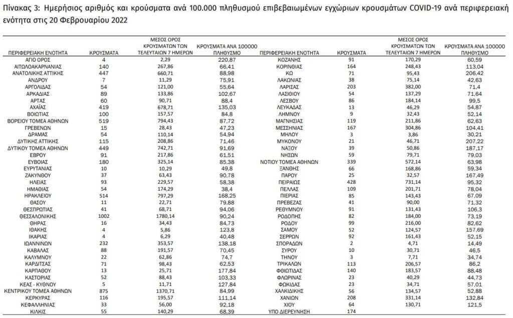 Οι νέες λοιμώξεις στο Λεκανοπέδιο Αττικής και στην Περιφερειακή Ενότητα Νήσων: