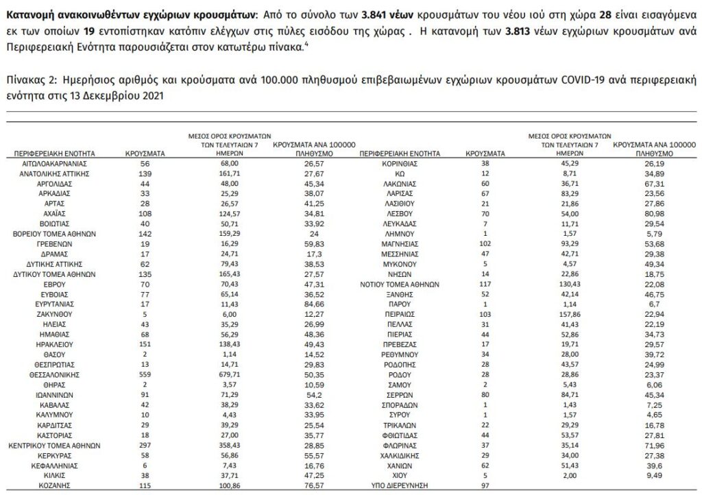 Από τα 3.841 νέα κρούσματα, 1.009 εντοπίζονται στην Αττική και 559 στη Θεσσαλονίκη.