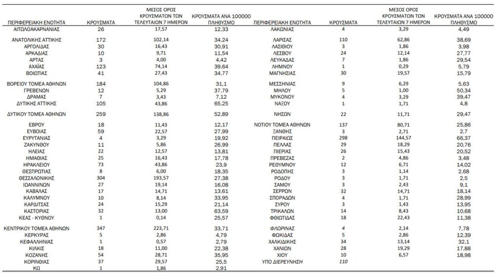 🔴 105 από τη Δυτική Αττική (76 χθες).