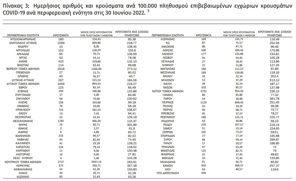 Διαβάστε την ημερήσια έκθεση της επιδημιολογικής επιτήρησης