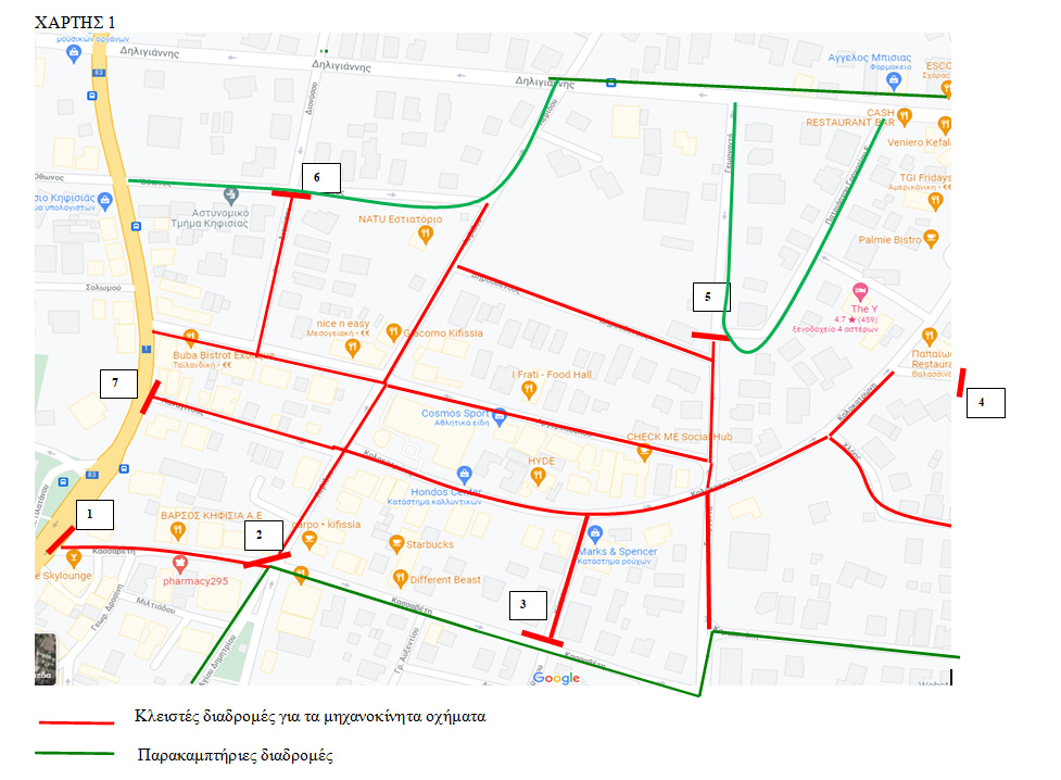 Για τον ασφαλή αποκλεισμό του παραδοσιακού κέντρου της Κηφισιάς για τα αυτοκίνητα και την παραχώρηση του δημόσιου χώρου σε πεζούς και ποδηλάτες θα συνδράμουν η Τροχαία Κηφισιάς και η Δημοτική Αστυνομία.