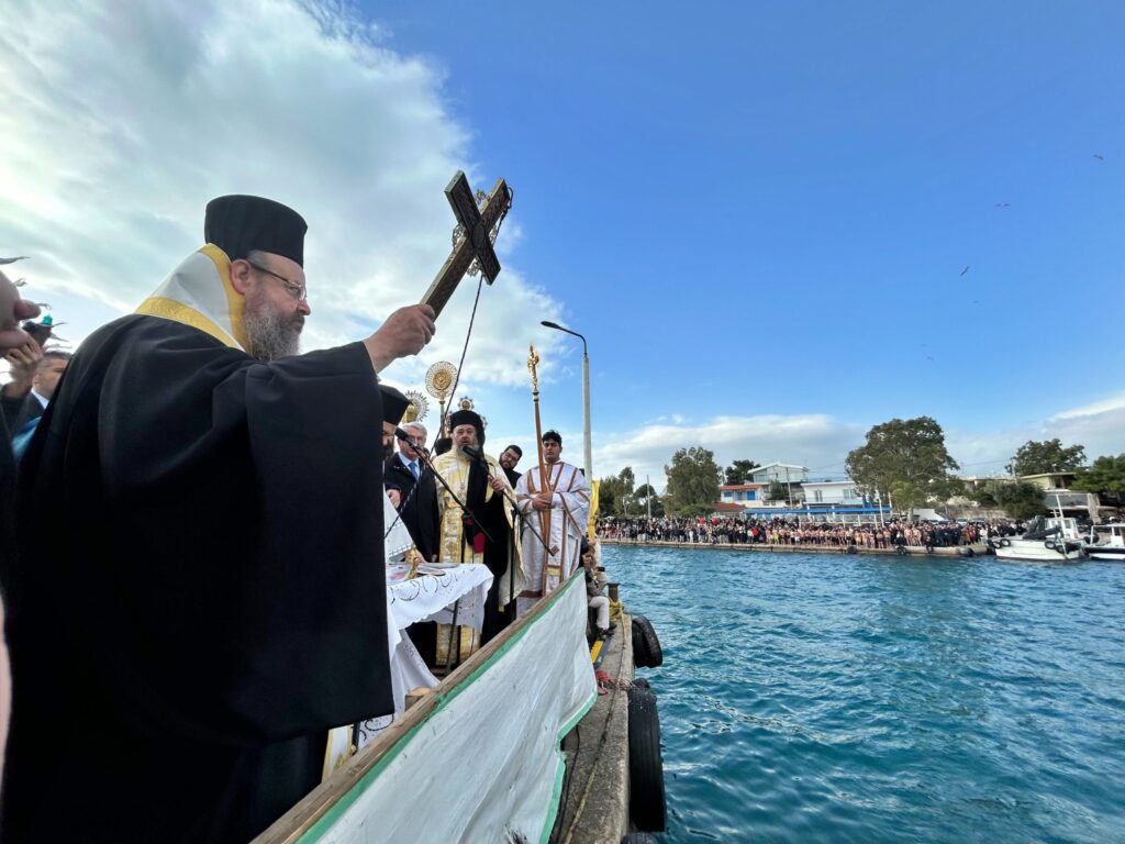 Μέσα σε κατανυκτικό κλίμα τελέστηκε ο καθαγιασμός των υδάτων και η κατάδυση του Τιμίου Σταυρού στο λιμάνι της Ελευσίνας, ενώ νωρίτερα τελέστηκε η αρχιερατική θεία λειτουργία στον Ιερό Ναό του Αγίου Γεωργίου.