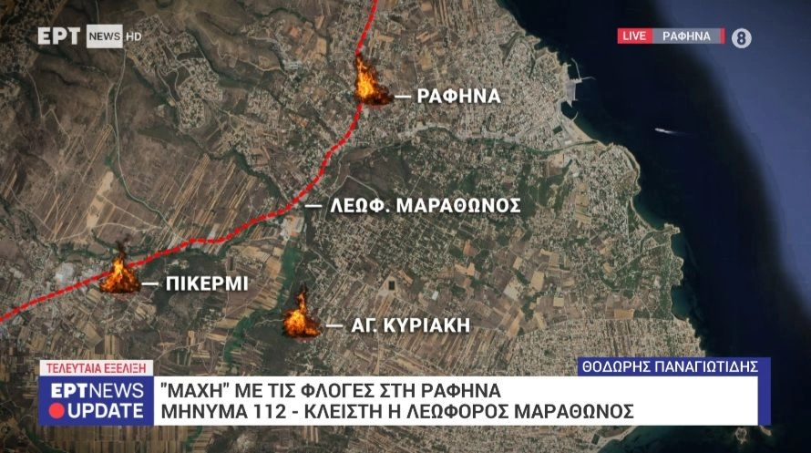 Λόγω της φωτιάς υπάρχει διακοπή της κυκλοφορίας των οχημάτων στη Λεωφόρο Μαραθώνος από τη συμβολή της με την οδό Φλέμινγκ ρεύμα κυκλοφορίας προς Αθήνα και στη Λεωφόρο Μαραθώνος από τη συμβολή της με την οδό Αγίου Δημητρίου ρεύμα κυκλοφορίας προς Μαραθώνα.