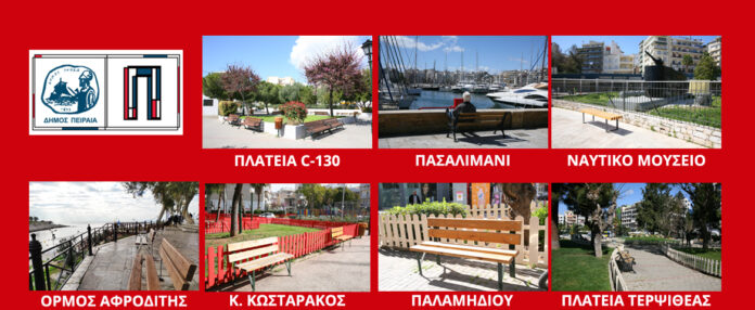 Ναυτικό Μουσείο Ελλάδος, πλατεία Φρεαττύδος, Πασαλιμάνι, Πειραϊκή, πλατείες «Ν. Λεγάκη», «Κ. Κωσταράκος», «Π. Βλαχάκου», πεζόδρομος Παλαμηδίου, περιοχή Αγίου Βασιλείου, αύλειοι χώροι Ιερών Ναών, είναι ορισμένα από τα σημεία που τοποθετήθηκαν τα νέα παγκάκια με μέριμνα της Διεύθυνσης Περιβάλλοντος και Πρασίνου του Δήμου Πειραιά.