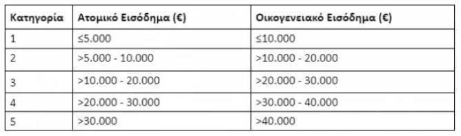 Δυνητικοί ωφελούμενοι του προγράμματος μπορεί να είναι οι αιτούντες που εντάσσονται στις παρακάτω εισοδηματικές κατηγορίες: