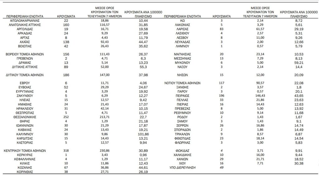Τα κρούσματα στο Λεκανοπέδιο και στην Περιφερειακή Ενότητα Νήσων της Αττικής: