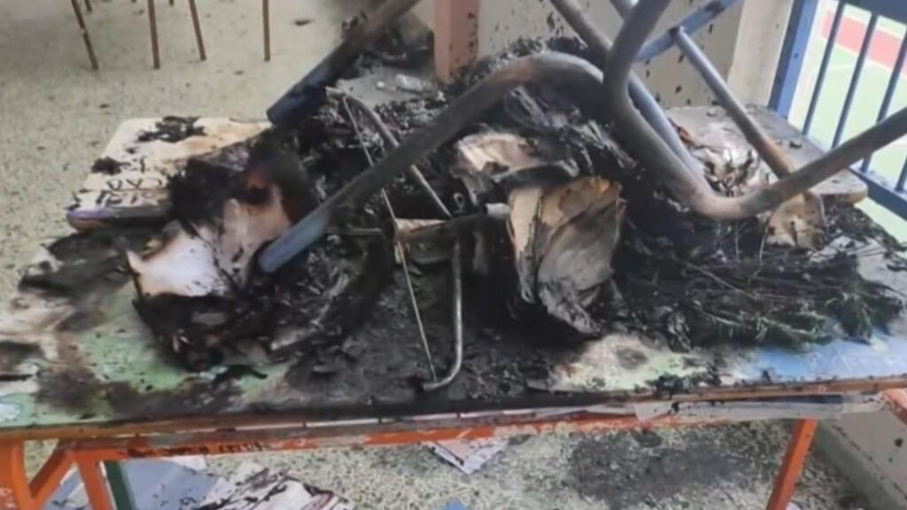 Οι δράστες έβαλαν φωτιά σε αίθουσα του α’ ορόφου της σχολικής μονάδας, καίγοντας θρανία, ενώ προκάλεσαν και διάφορες άλλες καταστροφές.