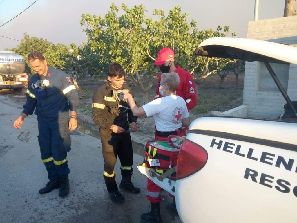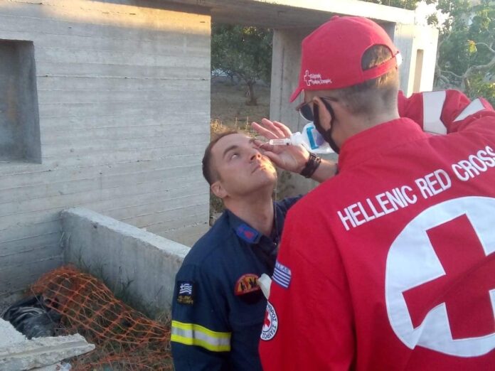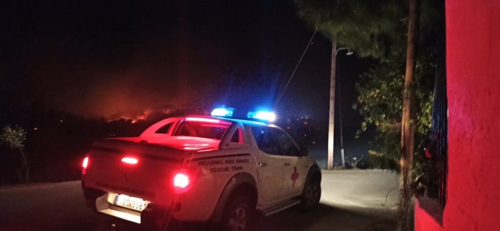 Από την πρώτη στιγμή που ξέσπασε η μεγάλη πυρκαγιά στην περιοχή του Σχίνου Κορινθίας, βρέθηκαν στο σημείο εθελοντές του Ελληνικού Ερυθρού Σταυρού.