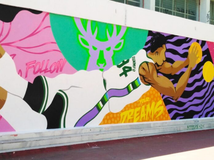 Ο σούπερ σταρ της εθνικής και του ΝΒΑ, Γιάννης Αντετοκούνμπο, ο οποίος αποτελεί πρότυπο αθλητή και πηγή έμπνευσης για εκατομμύρια παιδιά σε όλο τον πλανήτη, ενέπνευσε και τον γνωστό street artist, Epsilon για να δημιουργήσει μια πανέμορφη τοιχογραφία, η οποία κοσμεί πλέον το 8ο Δημοτικό Σχολείο Βύρωνα.