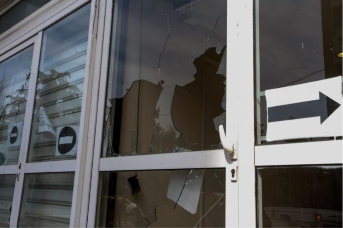Οι δράστες έσπασαν τη τζαμαρία των γραφείων, πέταξαν μπογιές και φυλλάδια και τράπηκαν σε φυγή.