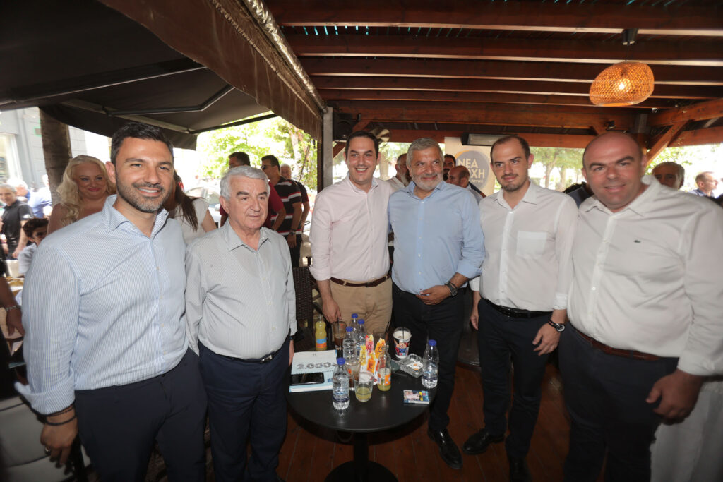Κατά τη συνάντηση του με τους πολίτες σε κεντρικό καφέ της πόλης παραβρέθηκαν μεταξύ άλλων οι υποψήφιοι βουλευτές της ΝΔ, Γιώργος Κώτσηρας, Θανάσης Μπούρας, Ευάγγελος Λιάκος και Σταμάτης Πουλής.